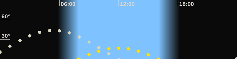 | Höchster Sonnenstand (Kulmination) | 12:01 Uhr (h = 16.8°) |