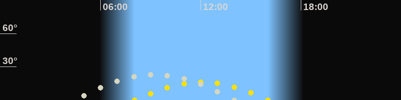 | Höchster Stand (Kulmination) | 09:15 Uhr (h=23.1°) |