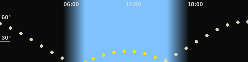 | Höchster Sonnenstand (Kulmination) | 12:11 Uhr (h = 16°) |