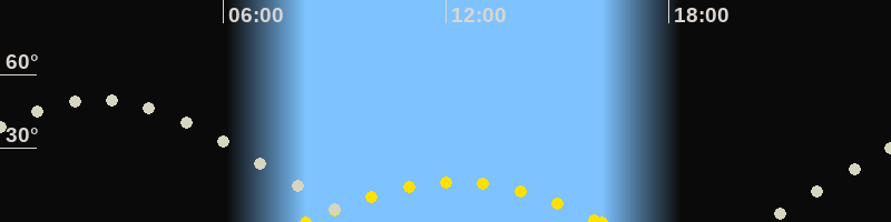 | Höchster Sonnenstand (Kulmination) | 12:13 Uhr (h = 16.3°) |