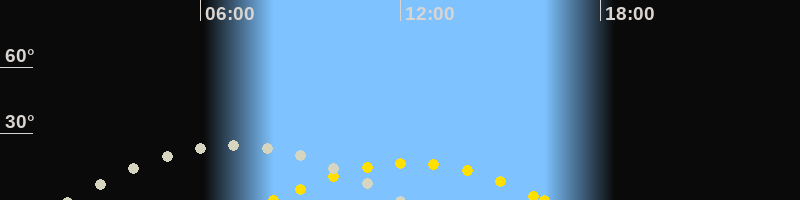 | Höchster Sonnenstand (Kulmination) | 12:16 Uhr (h = 16.9°) |