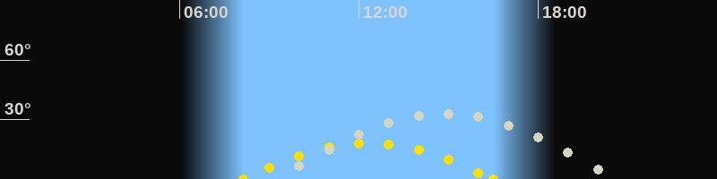 | Höchster Sonnenstand (Kulmination) | 12:19 Uhr (h = 18.1°) |