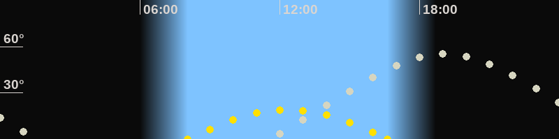 | Höchster Sonnenstand (Kulmination) | 12:21 Uhr (h = 19.1°) |