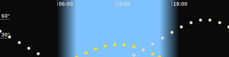 | Höchster Sonnenstand (Kulmination) | 12:21 Uhr (h = 19.8°) |