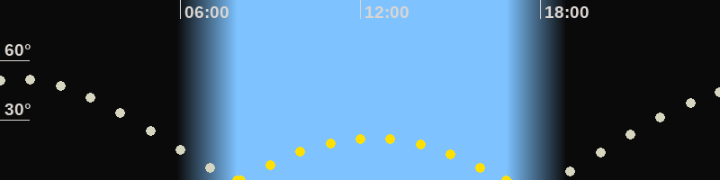 | Höchster Sonnenstand (Kulmination) | 12:23 Uhr (h = 21°) |
