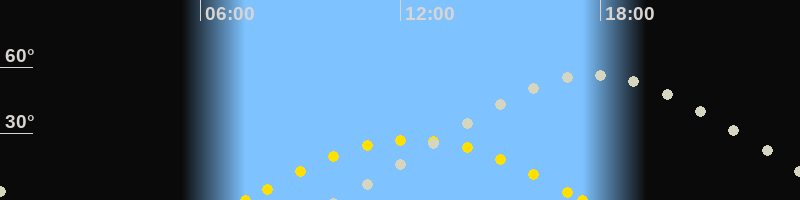 | Höchster Stand (Kulmination) | 17:45 Uhr (h=56.5°) |