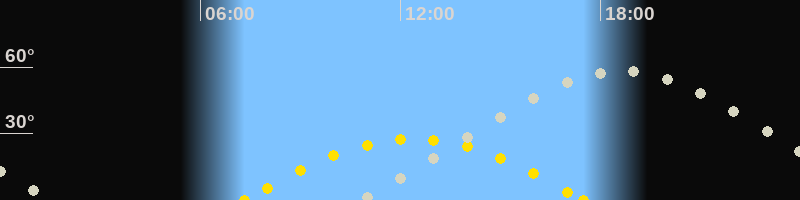 | Sonnenaufgang | 07:19 Uhr im Osten (αAz = 108.1°) |