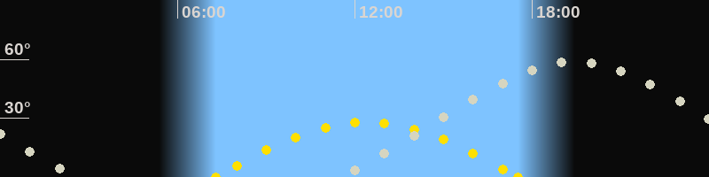 | Sonnenaufgang | 07:17 Uhr im Osten (αAz = 107.5°) |