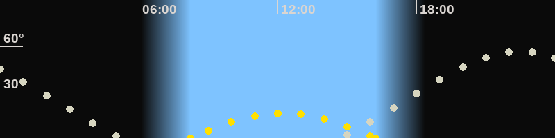 | Höchster Sonnenstand (Kulmination) | 12:14 Uhr (h = 16.4°) |