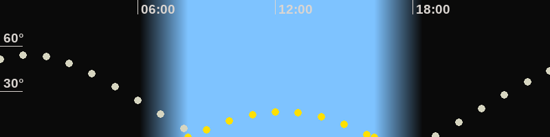 | Höchster Sonnenstand (Kulmination) | 12:16 Uhr (h = 16.8°) |
