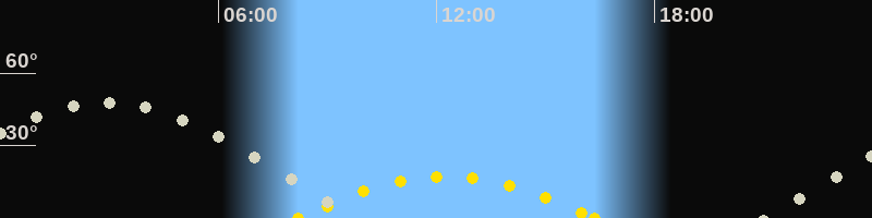 | Höchster Sonnenstand (Kulmination) | 12:16 Uhr (h = 17.1°) |