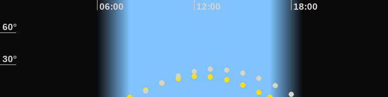 | Höchster Sonnenstand (Kulmination) | 12:21 Uhr (h = 19.5°) |