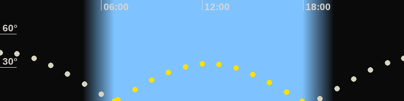 Höchster Sonnenstand (Kulmination)12:21 Uhr (h = 33.4°)
