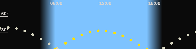 Höchster Sonnenstand (Kulmination)12:21 Uhr (h = 33.8°)