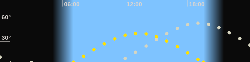 Sonnenaufgang07:01 Uhr im Osten (αAz = 85.8°)