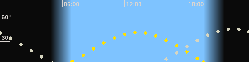 Höchster Sonnenstand (Kulmination)13:14 Uhr (h = 43.2°)