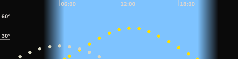 | Höchster Sonnenstand (Kulmination) | 13:11 Uhr (h = 47.4°) |