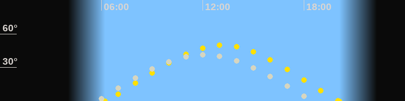 | Sonnenaufgang | 06:13 Uhr im Osten (αAz = 72.6°) |