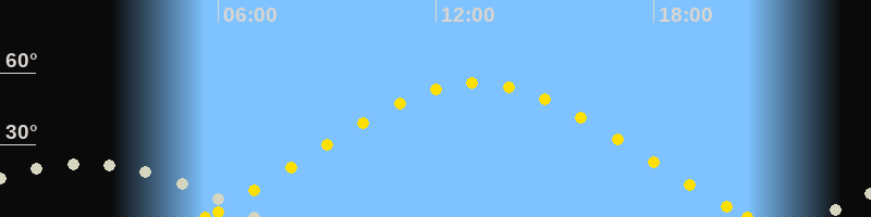 Höchster Sonnenstand (Kulmination)13:06 Uhr (h = 55.6°)