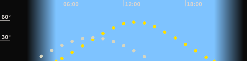| Höchster Sonnenstand (Kulmination) | 13:06 Uhr (h = 57.8°) |