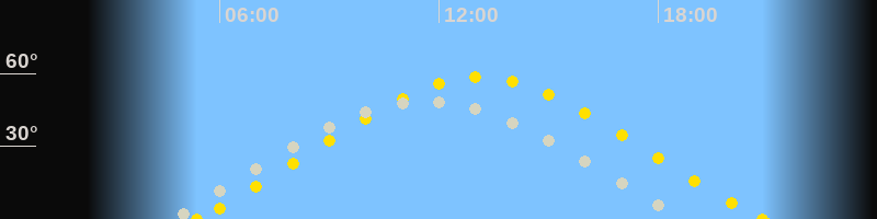 | Höchster Sonnenstand (Kulmination) | 13:06 Uhr (h = 58.5°) |