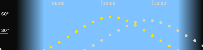 | Höchster Sonnenstand (Kulmination) | 13:06 Uhr (h = 59.7°) |