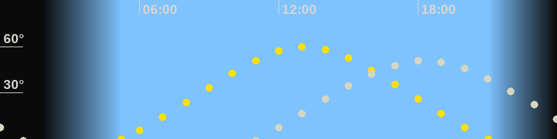 | Höchster Sonnenstand (Kulmination) | 13:07 Uhr (h = 59.9°) |