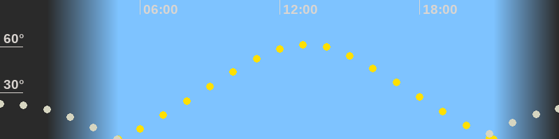 | Höchster Sonnenstand (Kulmination) | 13:08 Uhr (h = 61.4°) |