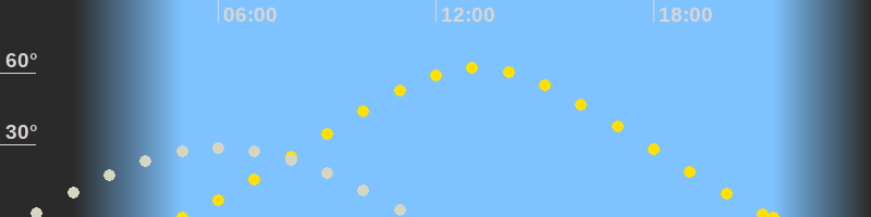 | Höchster Sonnenstand (Kulmination) | 13:09 Uhr (h = 62.1°) |
