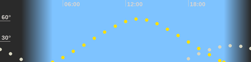 | Höchster Sonnenstand (Kulmination) | 13:13 Uhr (h = 62.6°) |