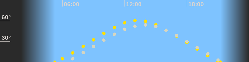 | Höchster Sonnenstand (Kulmination) | 13:16 Uhr (h = 60.6°) |