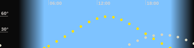 | Höchster Sonnenstand (Kulmination) | 13:16 Uhr (h = 59°) |