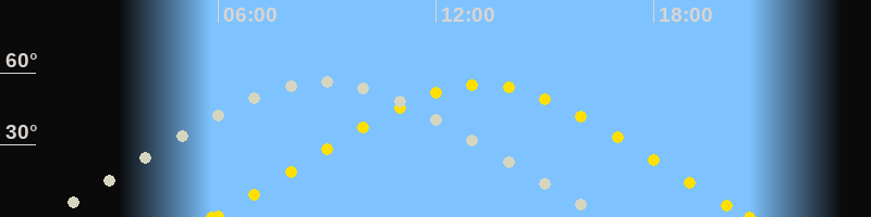 | Höchster Sonnenstand (Kulmination) | 13:15 Uhr (h = 55°) |