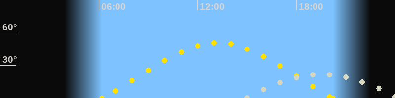 | Sonnenaufgang | 06:10 Uhr im Osten (αAz = 70.5°) |