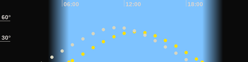 | Höchster Sonnenstand (Kulmination) | 13:07 Uhr (h = 44.1°) |