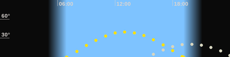| Sonnenaufgang | 06:56 Uhr im Osten (αAz = 88.2°) |