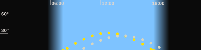 | Sonnenaufgang | 07:32 Uhr im Osten (αAz = 102.3°) |