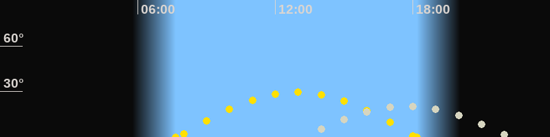 | Höchster Sonnenstand (Kulmination) | 12:55 Uhr (h = 29.5°) |