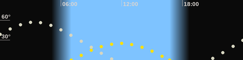 | Höchster Sonnenstand (Kulmination) | 11:53 Uhr (h = 25°) |