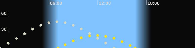 | Höchster Stand (Kulmination) | 07:03 Uhr (h=49.5°) |