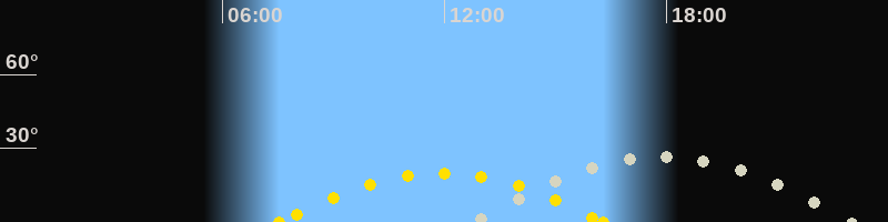 | Höchster Sonnenstand (Kulmination) | 11:55 Uhr (h = 20°) |