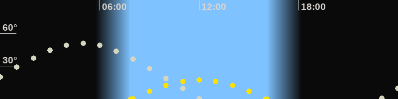 | Höchster Sonnenstand (Kulmination) | 11:59 Uhr (h = 17.4°) |