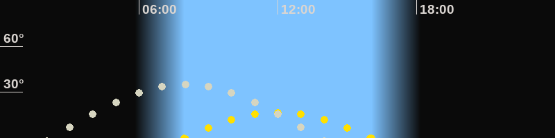 | Höchster Sonnenstand (Kulmination) | 12:00 Uhr (h = 16.9°) |