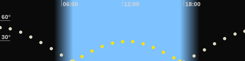 | Höchster Sonnenstand (Kulmination) | 12:23 Uhr (h = 29.1°) |