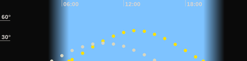 | Sonnenaufgang | 06:41 Uhr im Osten (αAz = 80.4°) |