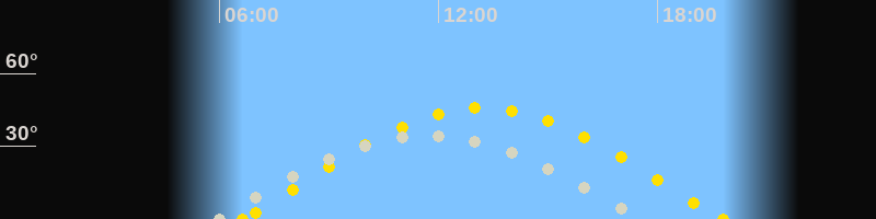 | Sonnenaufgang | 06:37 Uhr im Osten (αAz = 79.2°) |