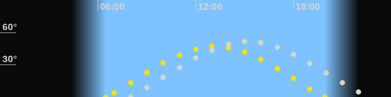 | Höchster Sonnenstand (Kulmination) | 13:11 Uhr (h = 47.3°) |