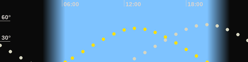 | Sonnenaufgang | 06:18 Uhr im Osten (αAz = 73.9°) |