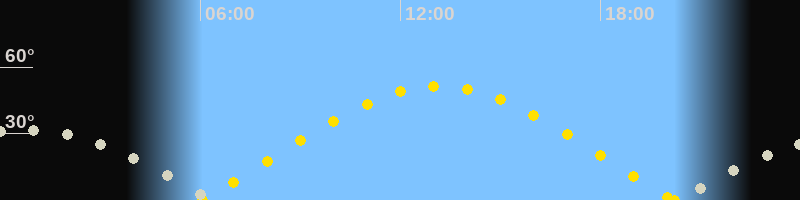 | Sonnenaufgang | 06:03 Uhr im Osten (αAz = 69.9°) |