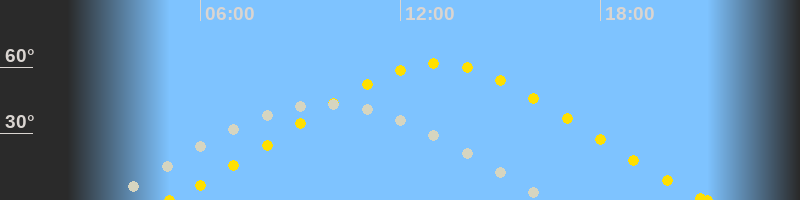 | Höchster Sonnenstand (Kulmination) | 13:08 Uhr (h = 61.5°) |